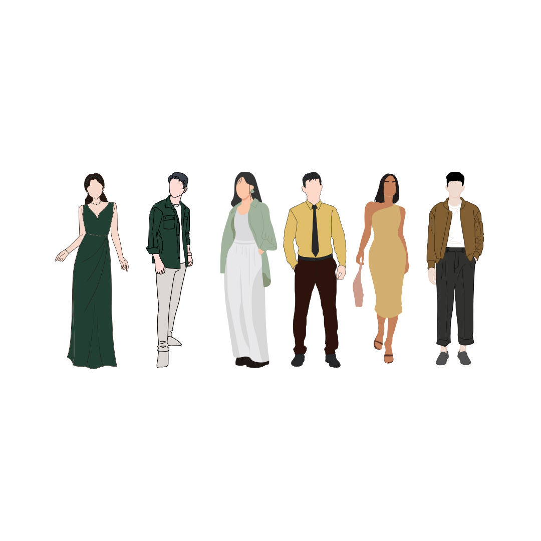We want everyone to feel comfortable and confident. Come looking your best and ready to celebrate! Think presentable, festive, and you. If you’d like some inspiration, these are our suggested colors so our photos feel beautifully coordinated.